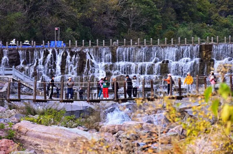 走在叠瀑前,感受水流潺潺,遥望山之巅,感受山之巍峨。