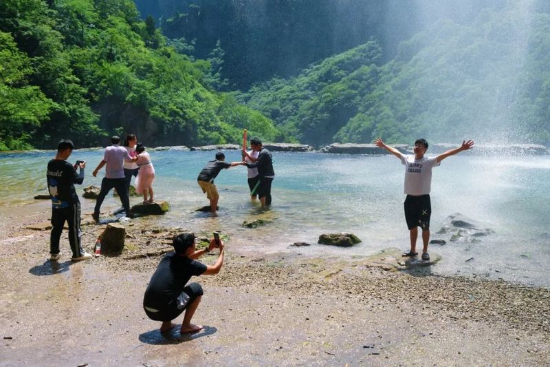 八里沟游览区潭瀑接踵,绿树成荫,行走在谷底移步异景不是很累,非常适合夏季避暑和带娃出行的人群。